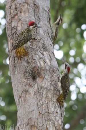 Дятлы также могут быть объектом пестконтроля. Казалось бы, какое отношение могут иметь дятлы к вредителям?! Оказывается, иногда имеют. Барабанные дроби, которые все мы слышим в старых лесах и парках уже в феврале-марте, это территориальная песня дятлов, оповещающая соседей, что участок занят. Выстукивают дроби дятлы на специальных «барабанах» - звонких сухих сучках старых деревьев, которые тщательно подбирают для этой цели. Представьте себе новый коттеджный поселок, построенный на месте бывшего старовозрастного леса – любимого обиталища дятлов. Многие деревья – барабаны, необходимые в жизни каждого дятла, вырублены, а вместо них построены дома, обшитые прекрасно звучащими рейками из дорогого канадского кедра. Мало дятлов устоит от соблазна попробовать обшивку на звук в качестве барабана. И пробуют, приводя в негодность кубометры дорогой обшивки. Именно с такой проблемой мы встретились в одном из коттеджных поселков Подмосковья. И здесь проблема была решена применением комплекса мер по отпугиванию птиц, подбор которых требует многих специальных знаний из жизни птиц.
