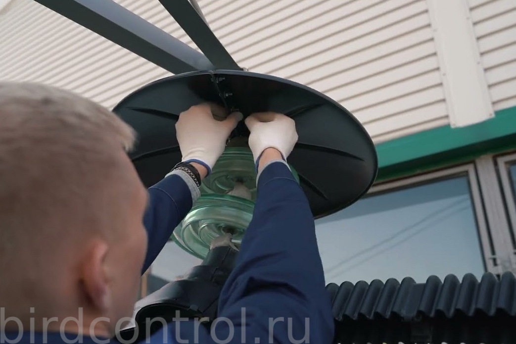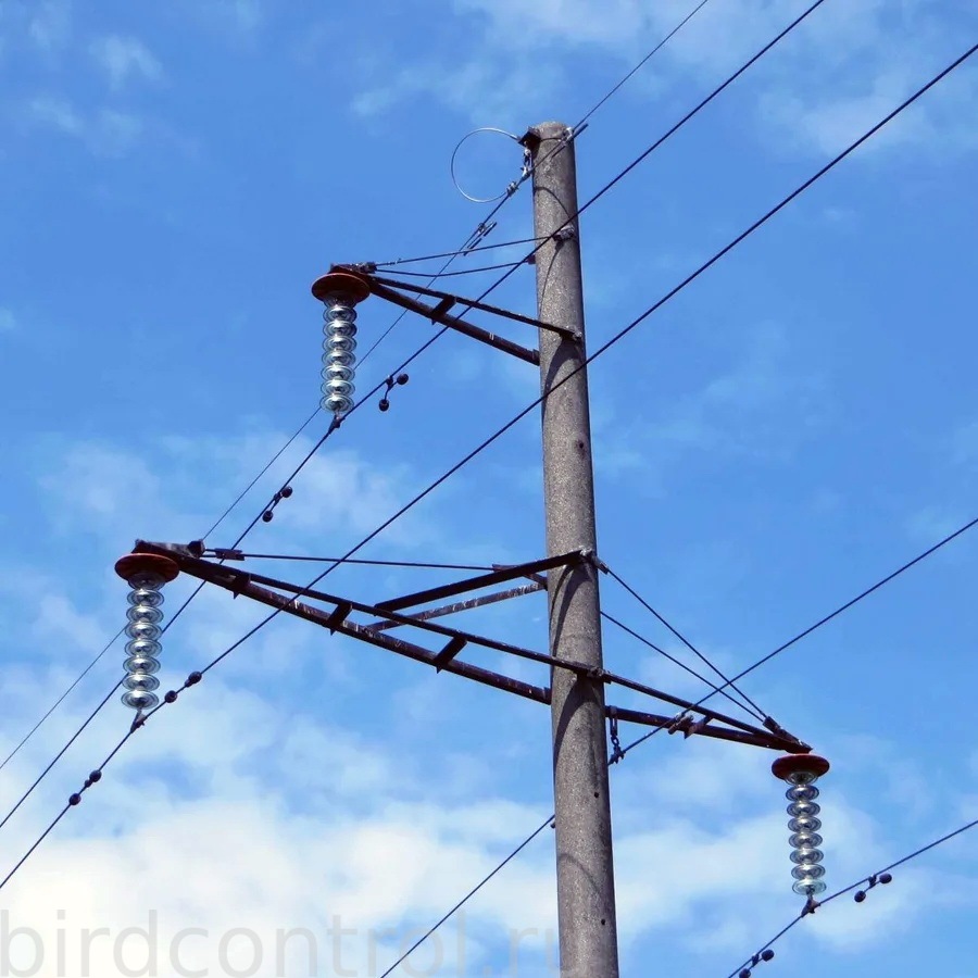 ПЗУ Барьерного типа, птицезащитное устройство барьерного типа, предназначенное для защиты изолирующих подвесок проводов в виде гирлянд стеклянных изоляторов или полимерных изоляторов от загрязнения и прямого перекрытия продуктами жизнедеятельности птиц.
